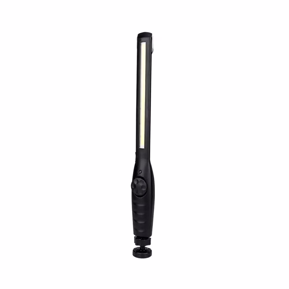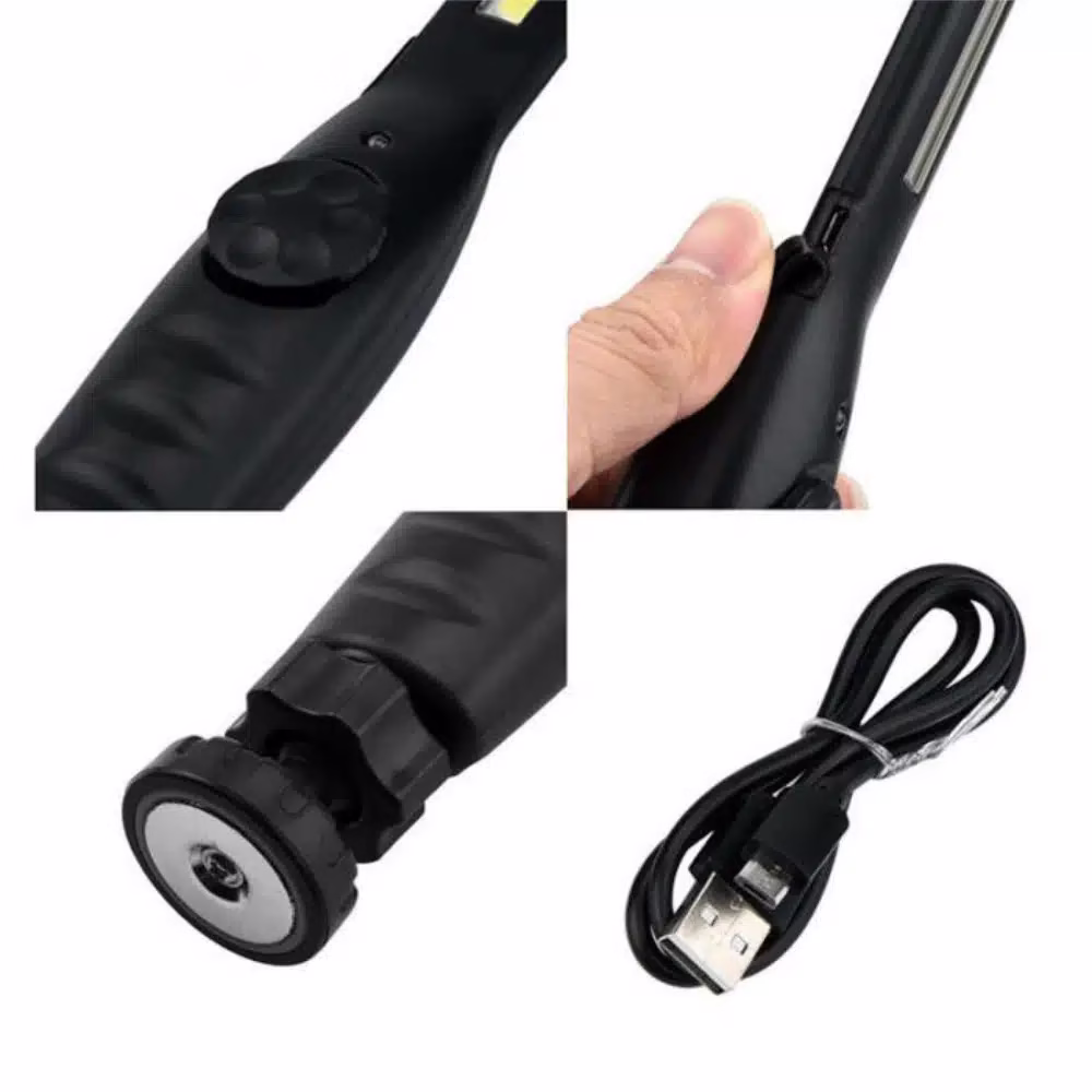 Notre lampe de maintenance rechargeable à LED est équipée d’un aimant puissant de 9 kilos. De quoi la faire tenir très largement de manière stable même à l’envers. Comme cet aimant est intégré directement à la base de la baladeuse, vous pourrez la fixer sur n’importe quelle surface métallique. Vous garderez ainsi, vos mains libres pour utiliser tous les autres outils dont vous aurez besoin. De plus, cette base magnétique permet à la lampe d’effectuer une rotation de 360° sur elle-même. Vous profiterez donc d’un éclairage multi-angle. Mais une fois le bon angle trouvé, vous pourrez tourner le collier de serrage qui permettra de le garder fixer. Il faudra d’ailleurs que celui-ci soit dévissé pour que la lampe soit bien mobile sur son axe.