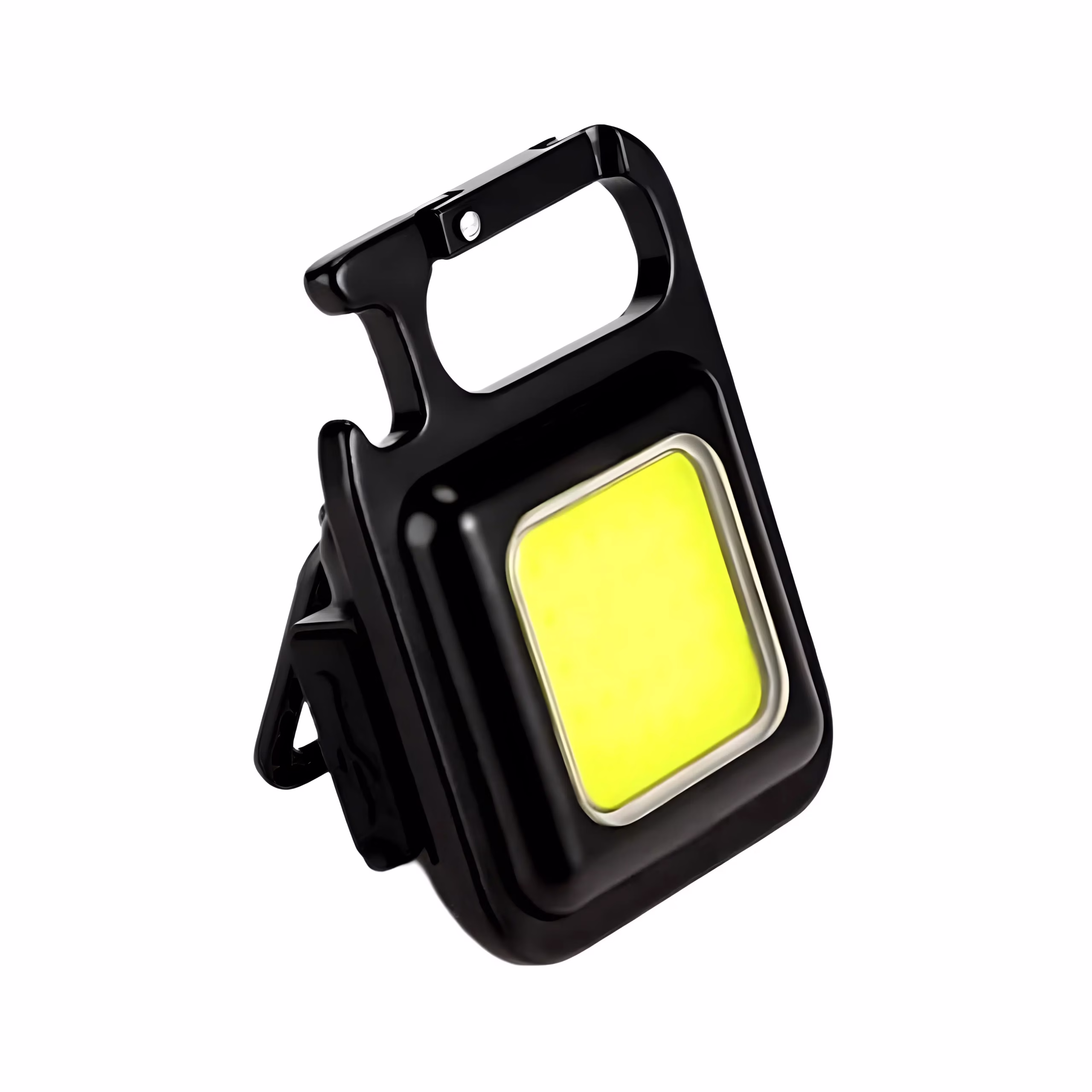 On peut dire que cette petite baladeuse LED rechargeable de travail porte-clé pourra vous suivre partout où vous le voudrez. Ne mesure pas plus de 6 cm sur 4, et ne pèse que 65 g. Vous pourrez l’accrocher à votre sac à dos avec son mousqueton pendant une randonnée par exemple. Et pour d’autres possibilités de maintien, il possède également un aimant dans son dos pour être collé à n’importe quelle surface métallique. Mais aussi, un support inclinable lui permettra de se poser sur une surface plane.