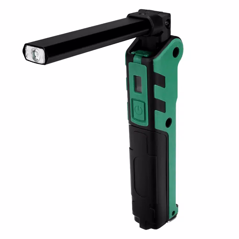 Venez vous équiper de notre Baladeuse rechargeable pliable verte COB Inspector pour compléter votre outillage quotidien d’une lampe pratique