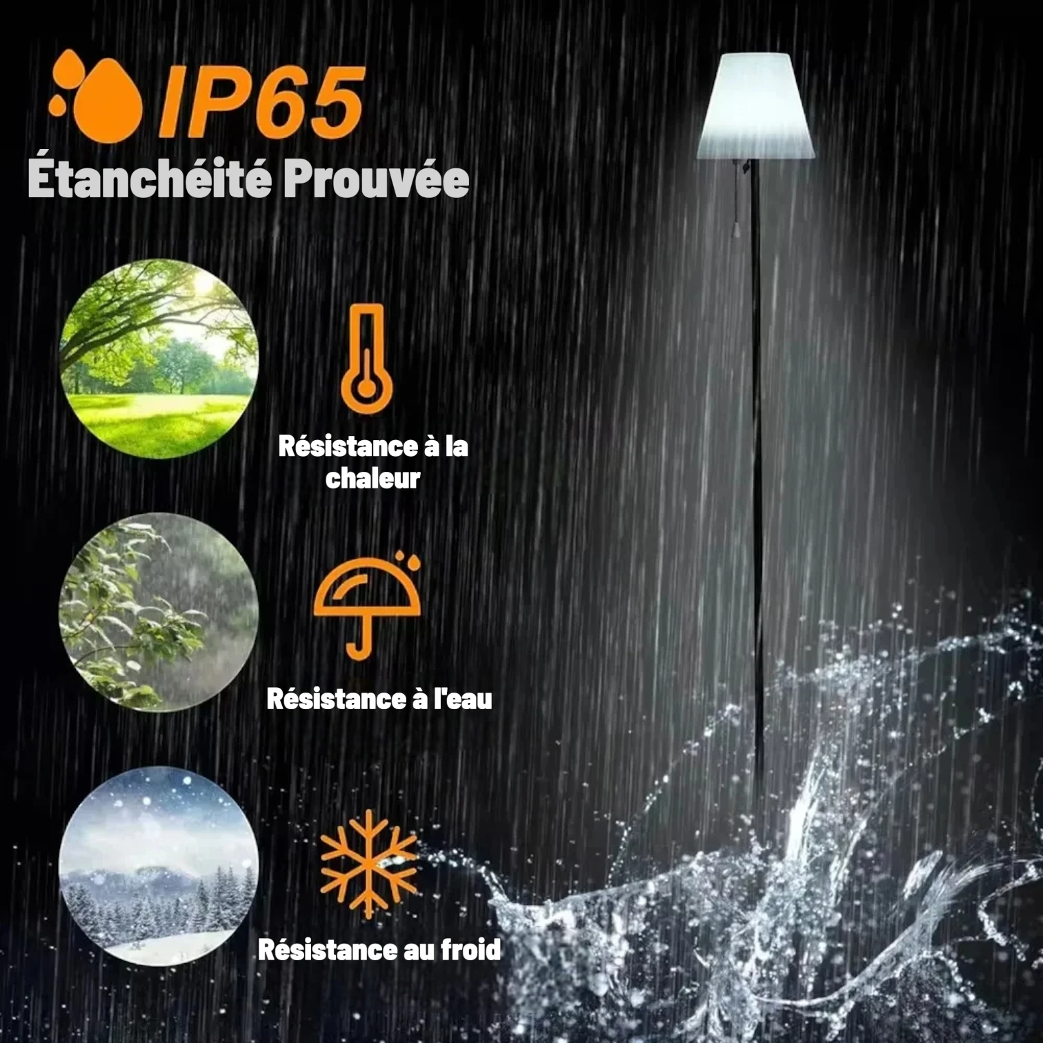 - Étanche IP65 : usage intérieur/extérieur sans limite