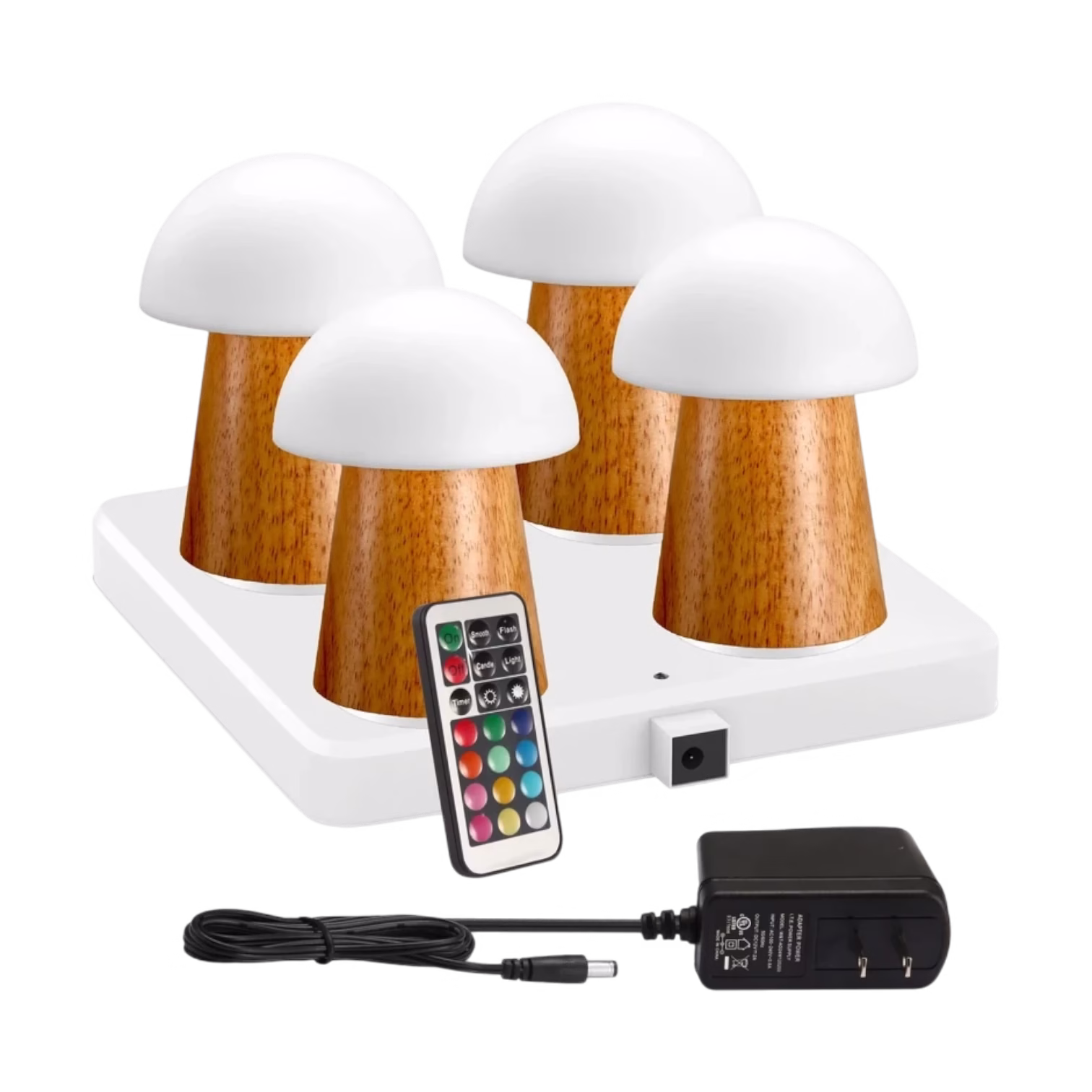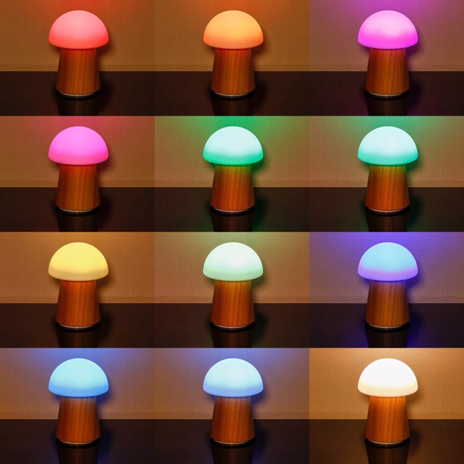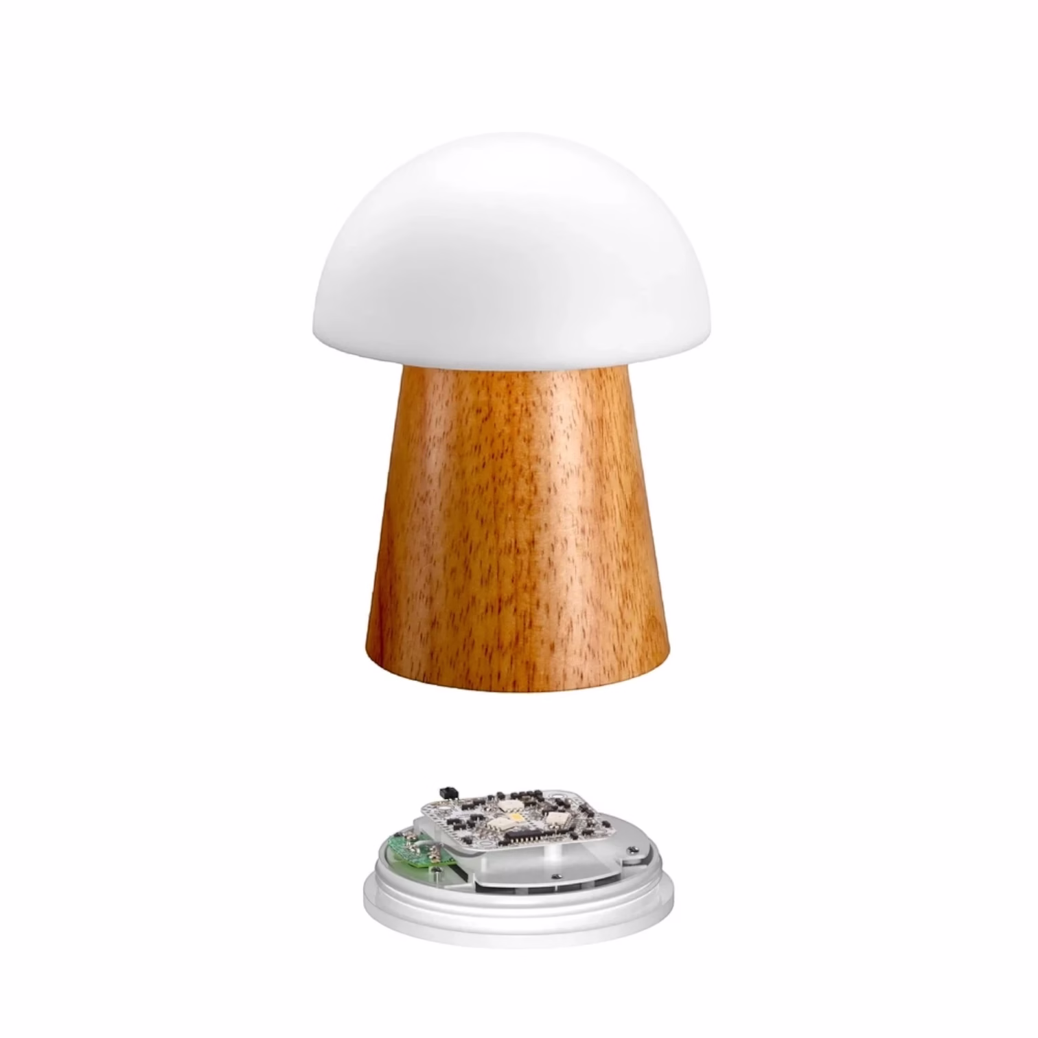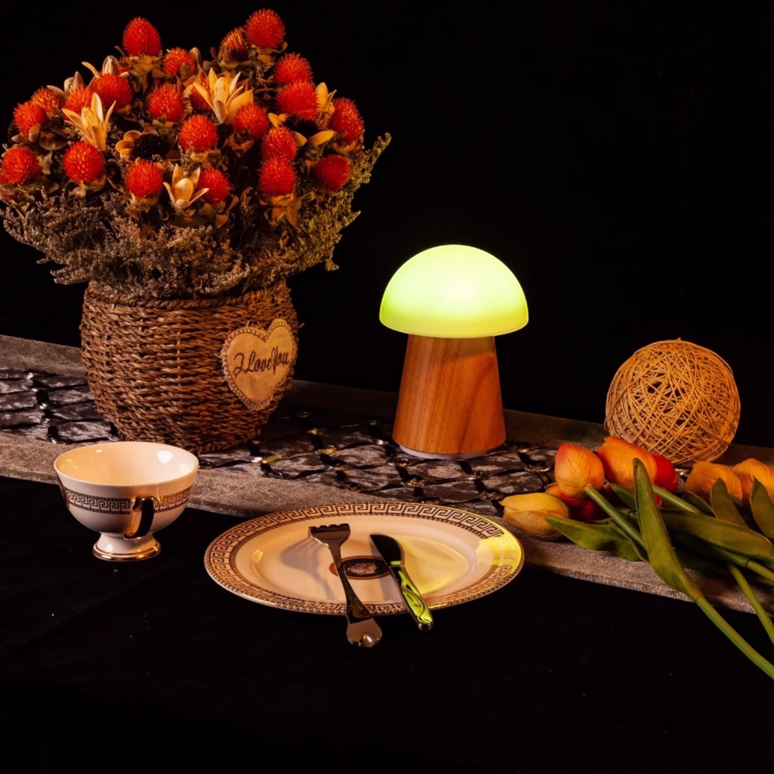 La lampe champignon bois style hôtel MP212 transforme instantanément vos tables en espaces d’exception grâce à son design scandinave et sa technologie RGBW multicolore.