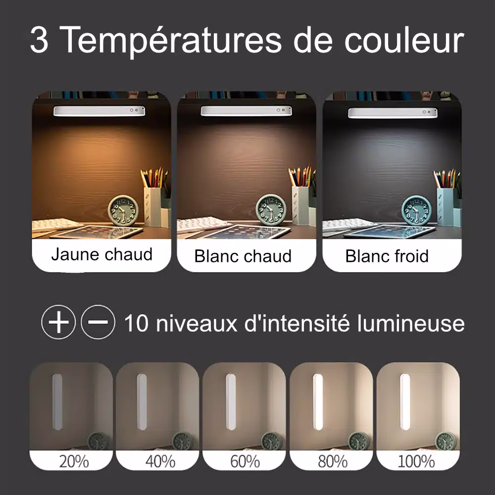 Voici pour vous notre lampe de bureau murale rechargeable Office pour éclairer votre espace de travail en la fixant simplement au mur grâce à son support magnétique. Vous pourrez la décrocher tout aussi facilement.
