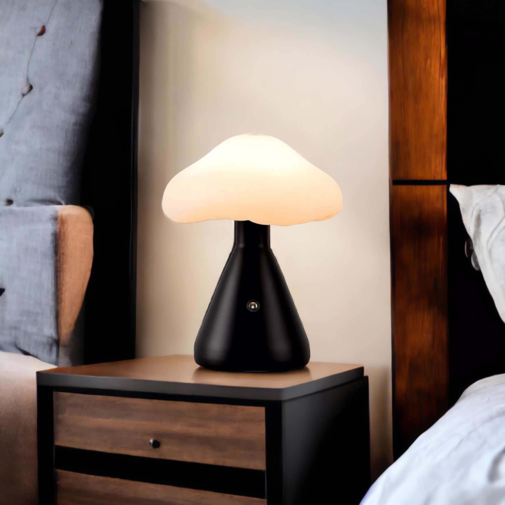 Bienvenue dans un monde où la nature rencontre l’imaginaire! Notre lampe de chevet sans fil noire Champi-Cloud vous offre une silhouette intrigante, mêlant un socle en forme de champignon à un abat-jour évoquant la douceur d’un petit nuage.