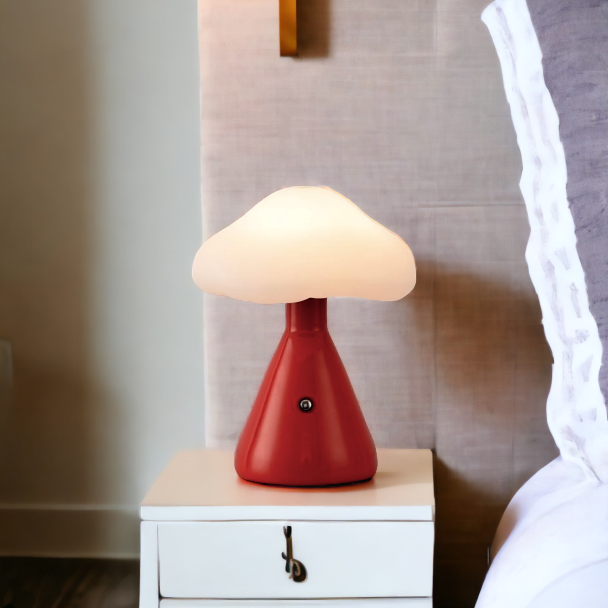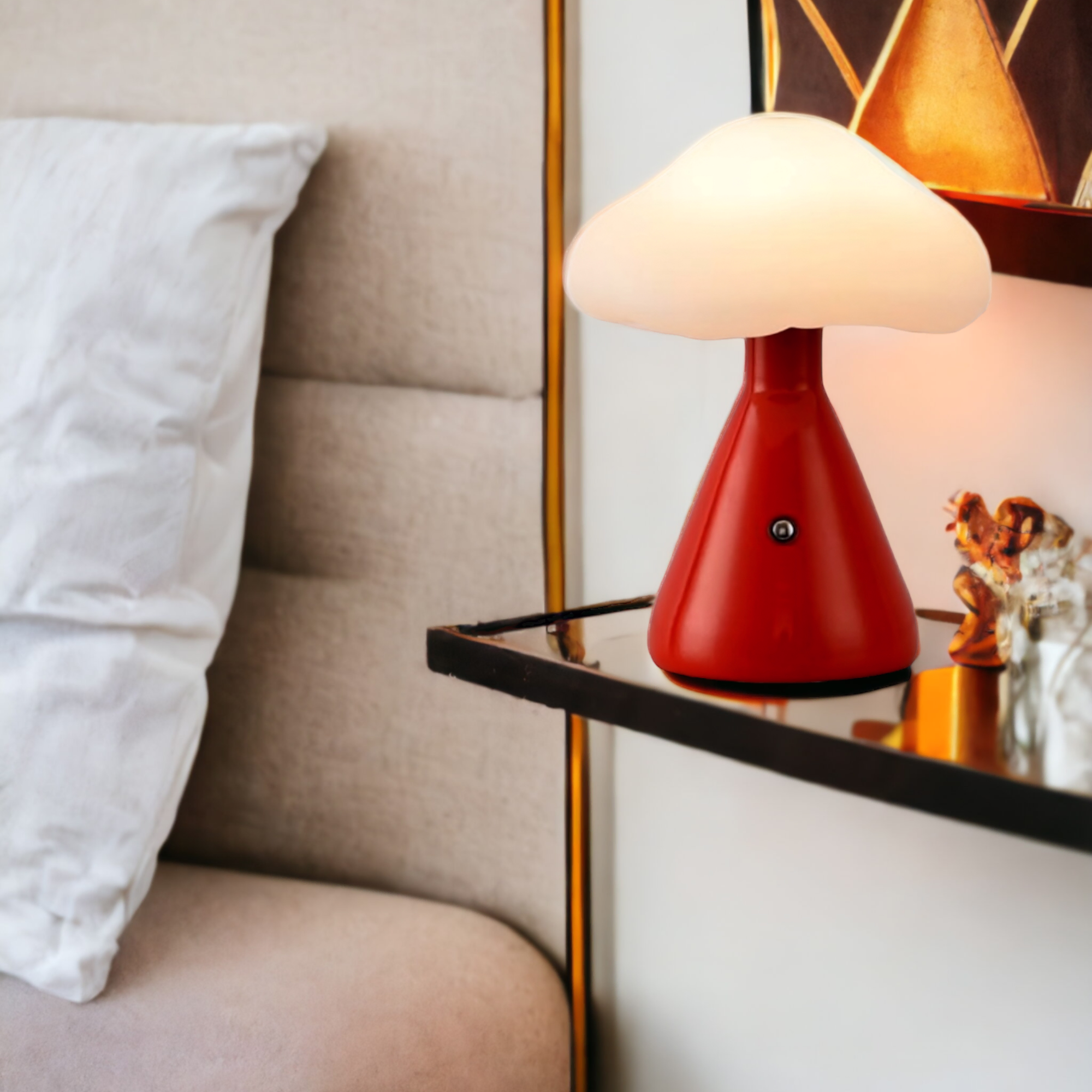 Voici pour vous notre Lampe de chevet sans fil rouge Champi-cloud avec son design original qui apportera une touche de lumière féérique près de votre lit.