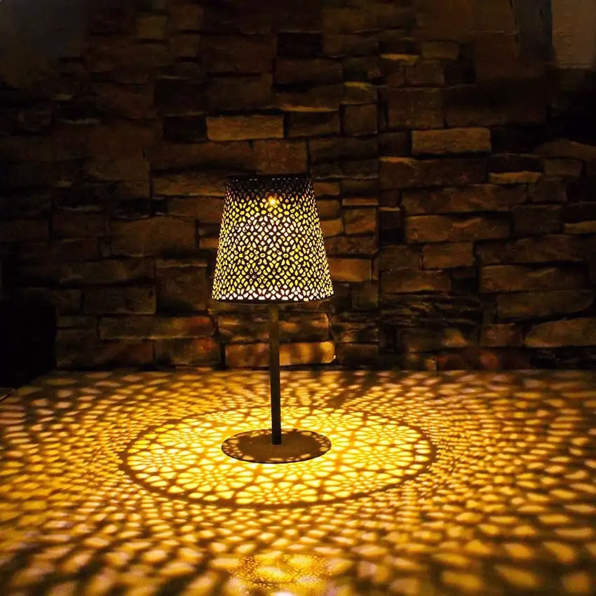 Voici notre lampe de table rechargeable solaire FineSteel qui ne manque pas de caractère de par son design. Le corps de la lampe a été en effet, entièrement forgé dans le métal tout en étant parsemé de petits motifs. Ces derniers laisseront donc s’échapper subtilement, toute sa chaleur lumineuse. Pour la produire, rien de tel qu’une ampoule LED SMD à très basse consommation. Vous verrez que sa lumière fera vraiment l’effet d’une douce lueur en pleine obscurité sur une table en extérieur. De quoi, orner celles de votre jardin pendant la nuit par exemple.