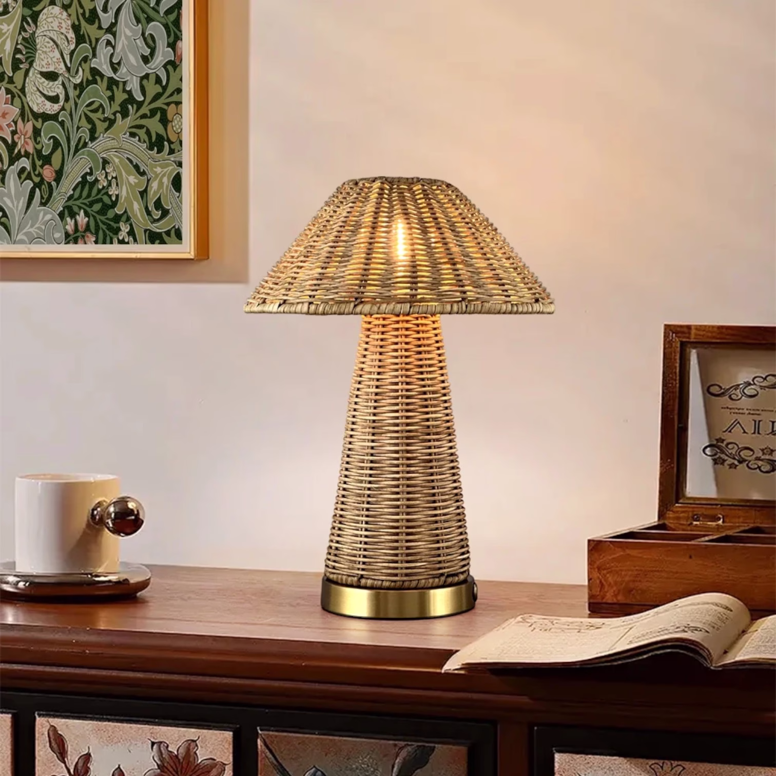 La Lampe design sans fil hôtel TB01 transforme instantanément vos espaces en ambiances raffinées avec son design en rotin authentique et son éclairage modulable tactile.