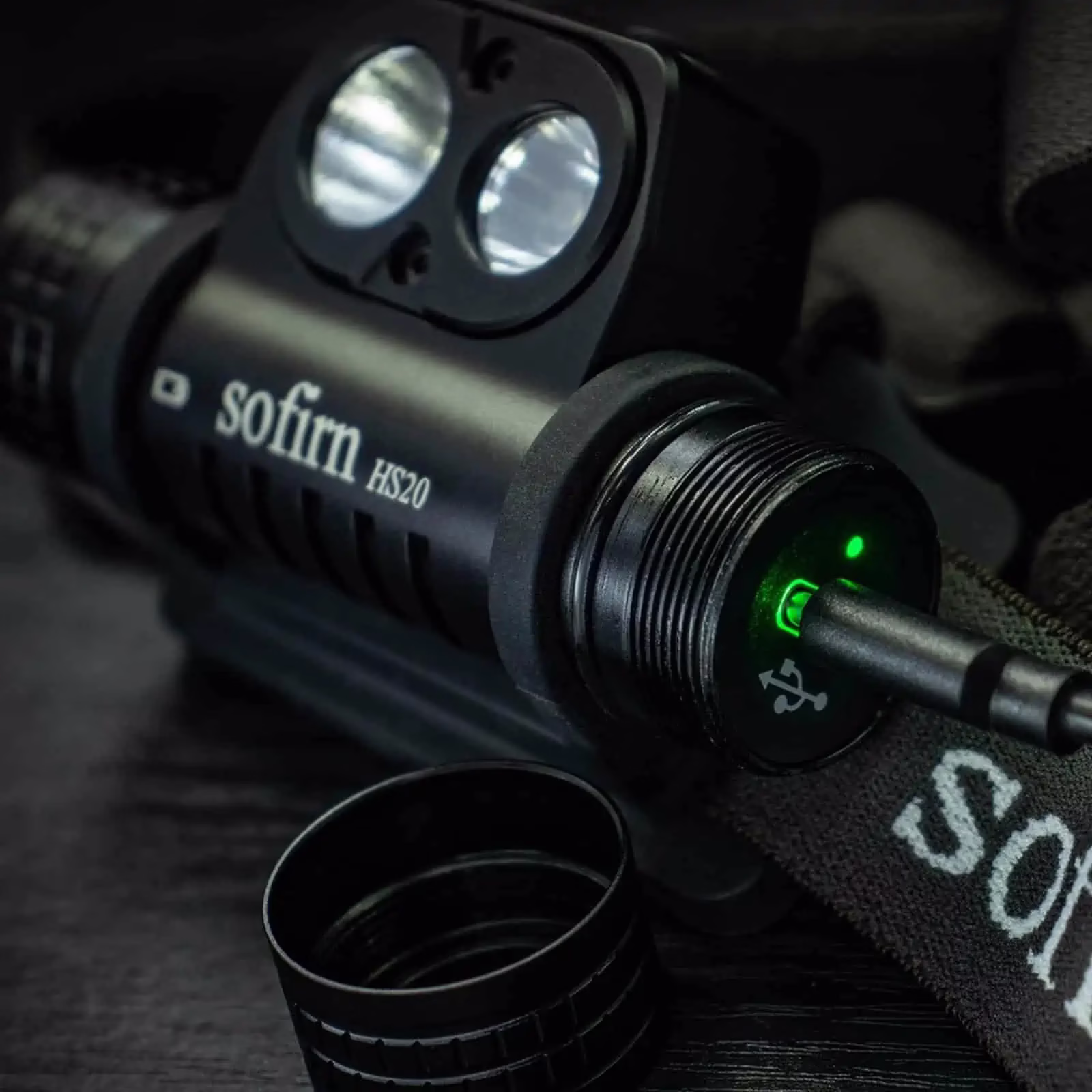 Enfin, notre torche frontale Sofirn HS20 est livrée avec une batterie rechargeable au lithium de 3 000 mAh et un câble de rechargement USB de type C. Sa recharge se fera donc, pour rapidement et facilement à partir de n’importe quel chargeur ou appareil disposant d’une prise USB classique. En plus, elle pourra s’effectuer en seulement 2h30 de façon à être prête à l’emploi le plus rapidement possible. La lampe possède également un indicateur lumineux qui permet de suivre la charge et l’autonomie restante de la batterie. Vous aurez donc, une grande flexibilité d’utilisation. De plus, la lampe frontale rechargeable Sofirn HS20 possède un système de protection intelligent. En effet, elle diminuera d’elle-même sa puissante en cas de surchauffe. De cette manière, elle préviendra tout risque de brûlure à son utilisateur.