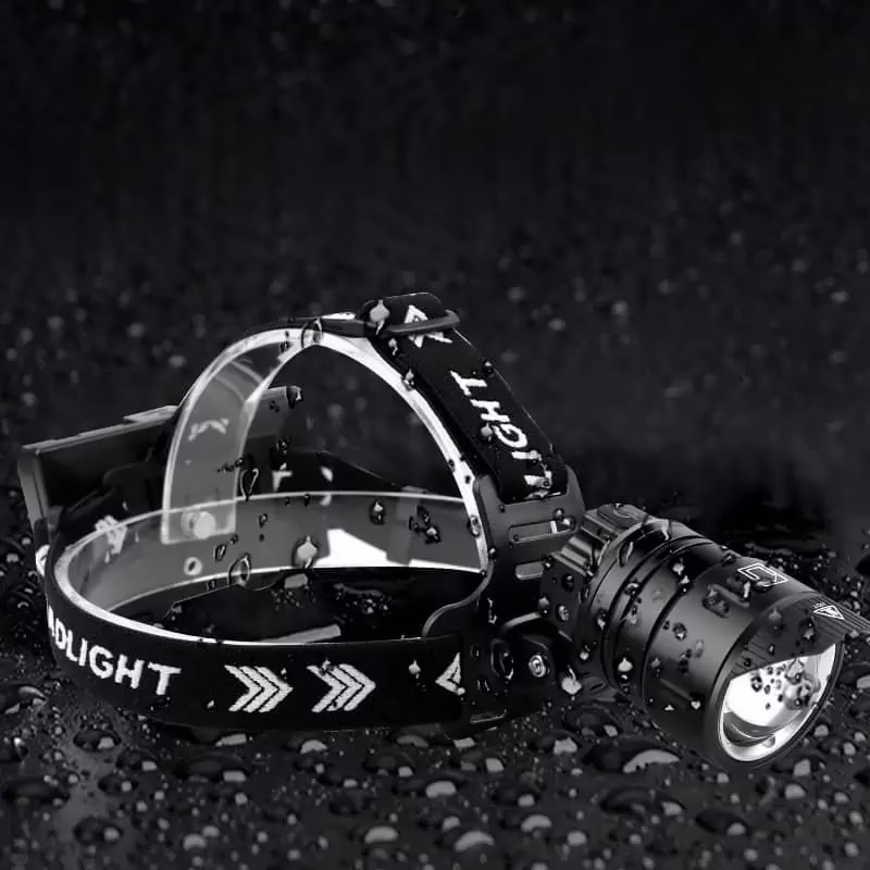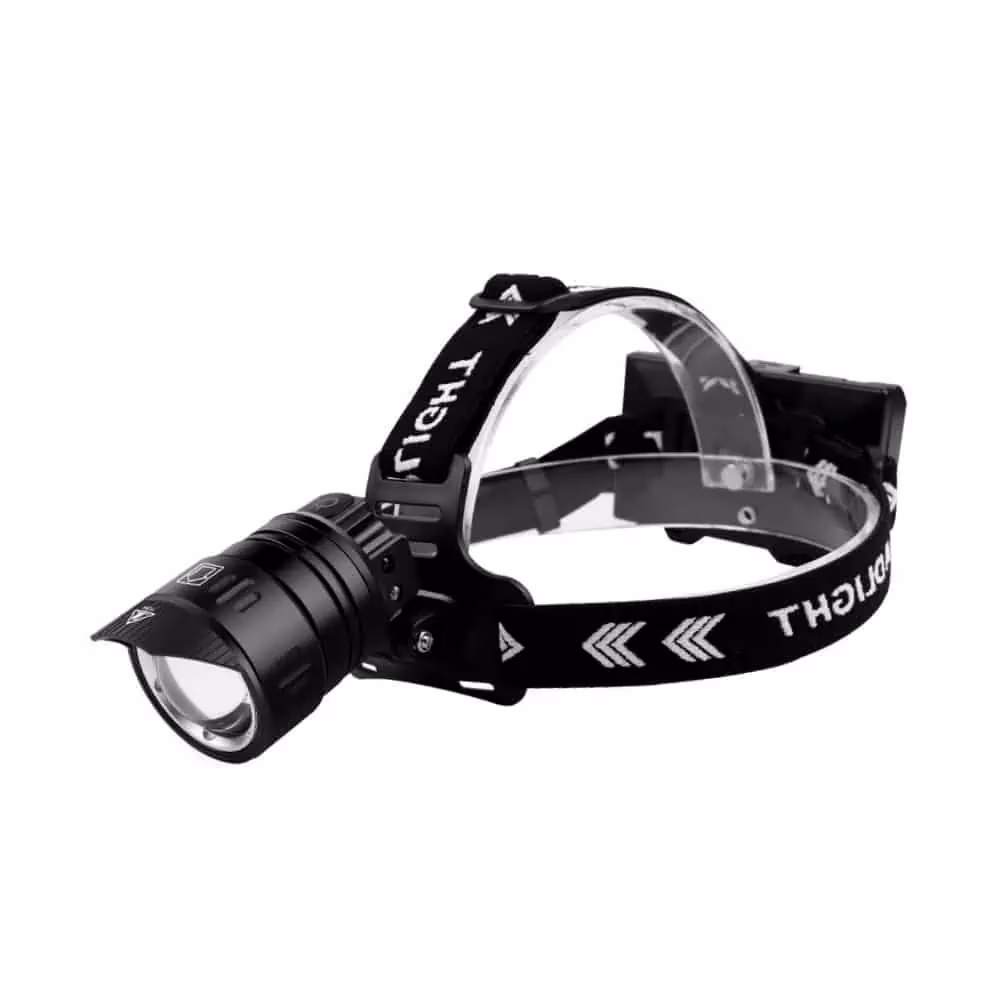 Une lampe frontale rechargeable LED zoom Vega avec un faisceau lumineux précis