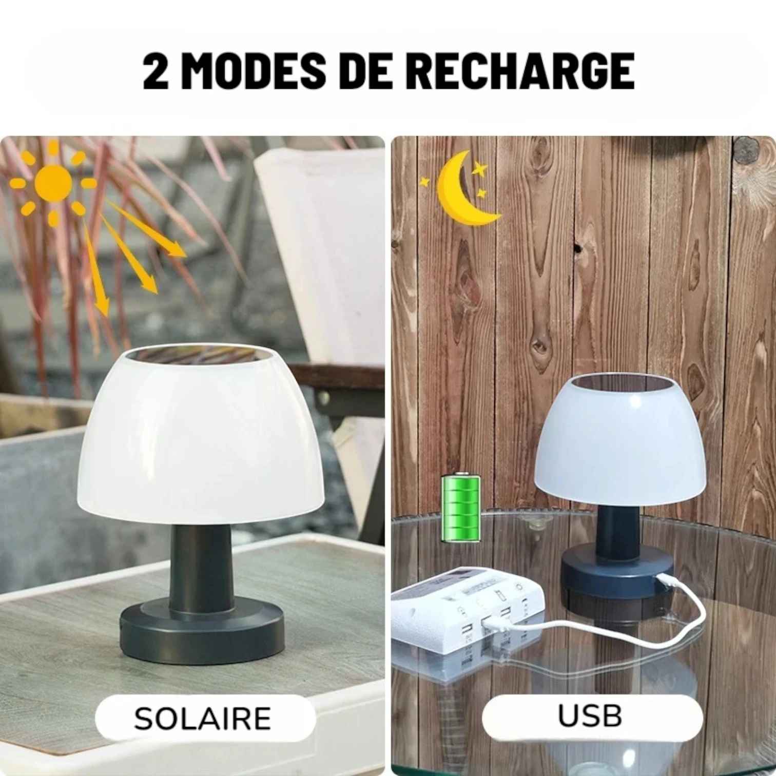 La Lampe LED Solaire Rechargeable HOTOPLEDS transforme radicalement votre expérience d’éclairage domestique et professionnel. Fini les contraintes de branchement et les factures d’électricité. En effet, son système d’alimentation solaire autonome est couplé à une recharge TYPE-C ultra-rapide. Son design moderne en champignon avec abat-jour blanc diffusant crée instantanément une ambiance chaleureuse pour vos séances de télétravail, lectures nocturnes et dîners romantiques. L’éclairage modulable de 20 à 200 lumens s’adapte parfaitement à vos besoins spécifiques. Tandis que la batterie LFP 3,7V/2200mAh, elle vous libère totalement des contraintes électriques pendant des heures d’utilisation continue.