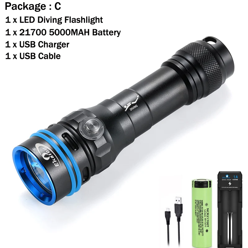 L’Ekaiou 3000 Lumens Super lumineux SFT40 LED lampe de poche de plongée IP68 vous accompagne dans vos explorations sous-marines jusqu’à 150 mètres de profondeur avec une puissance d’éclairage exceptionnelle.