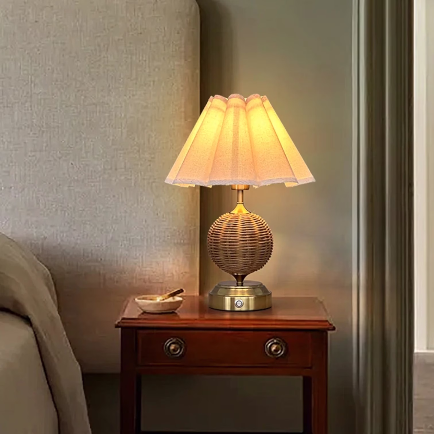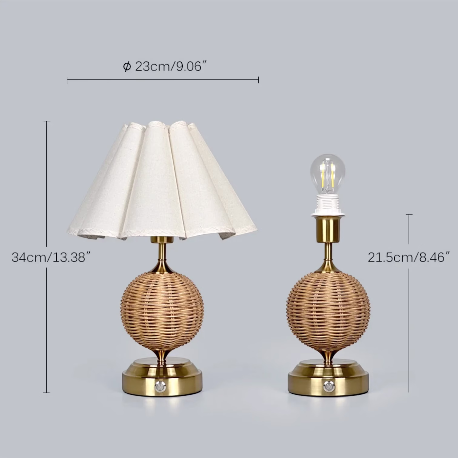 Immédiatement captivante par son architecture tri-composée, la lampe sans fil en rotin table écologique TB08 transforme chaque table en expérience sensorielle unique. Son abat-jour conique en tissu plissé diffuse une lumière chaude à 2700K qui enveloppe délicatement l’espace d’une atmosphère sophistiquée et chaleureuse. De plus, la base sphérique en rotin tressé à la main révèle un savoir-faire artisanal authentique qui raconte l’histoire de matériaux nobles et durables. Ainsi, le socle doré apporte une touche d’élégance contemporaine qui sublime l’authenticité du rotin naturel. Résultat immédiat : vos convives découvrent un objet décoratif qui devient naturellement le point focal de leur expérience et génère une photogénie naturelle qui encourage le partage sur les réseaux sociaux.