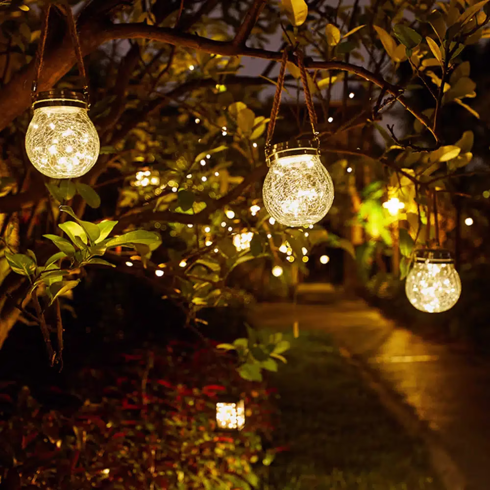 Laissez vous tenter par notre lampe solaire suspendue boule verre que vous pourrez accrocher facilement pour une décoration lumineuse LED en hauteur