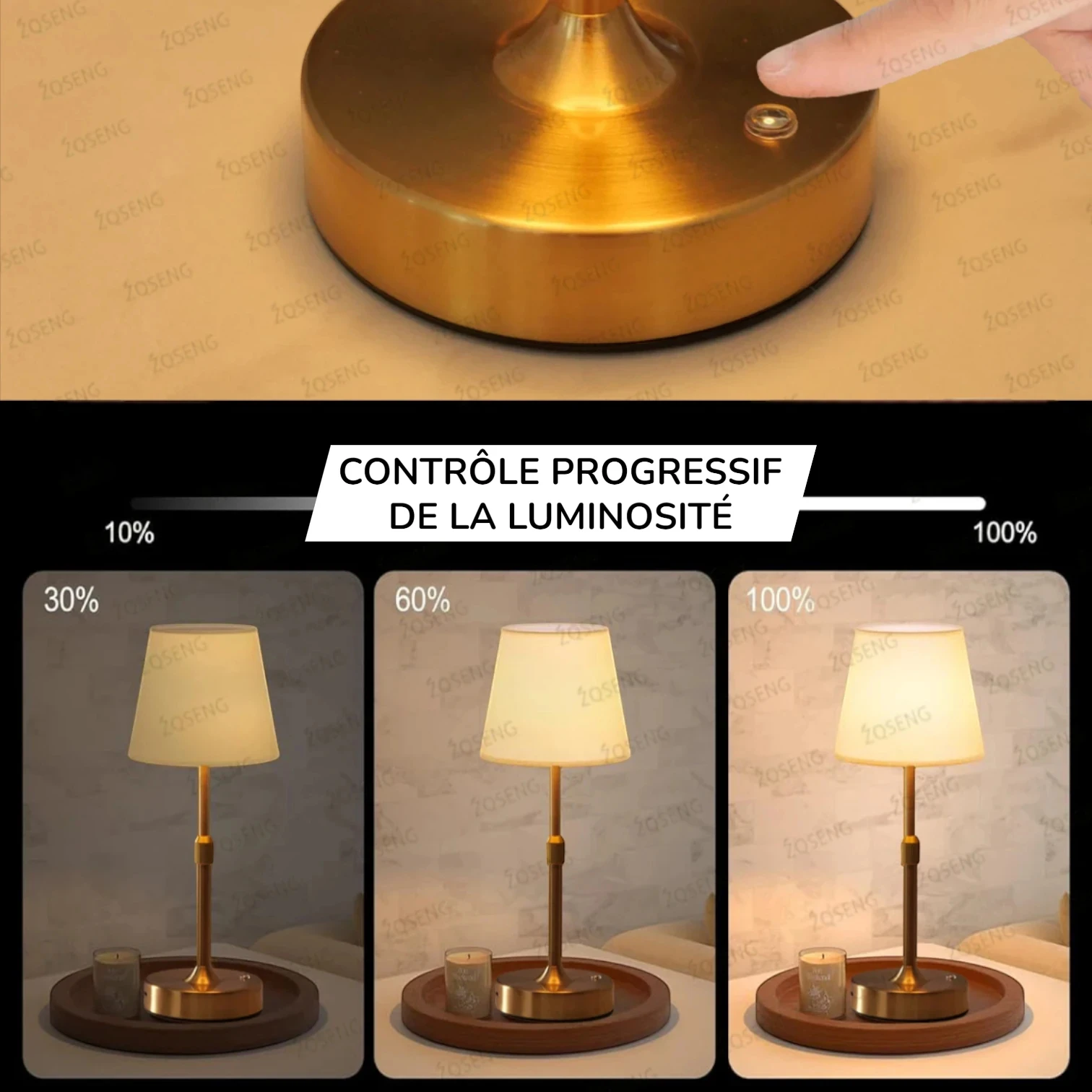 Lampe de table rechargeable tactile ZQSENG