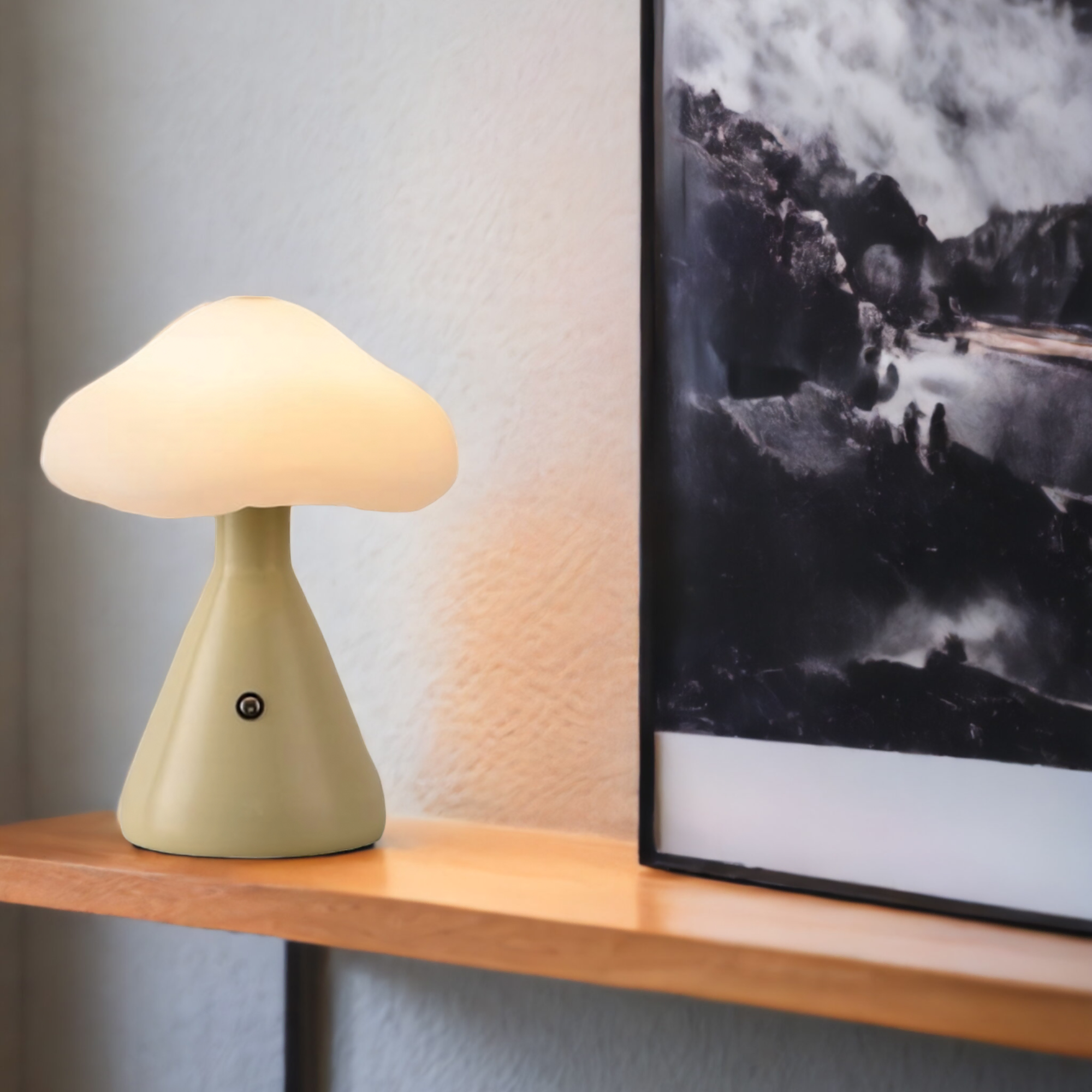 Bienvenue dans un monde où la nature rencontre l’imaginaire! Notre lampe de chevet sans fil crème Champi-Cloud vous offre une silhouette intrigante, mêlant un socle en forme de champignon à un abat-jour évoquant la douceur d’un petit nuage.