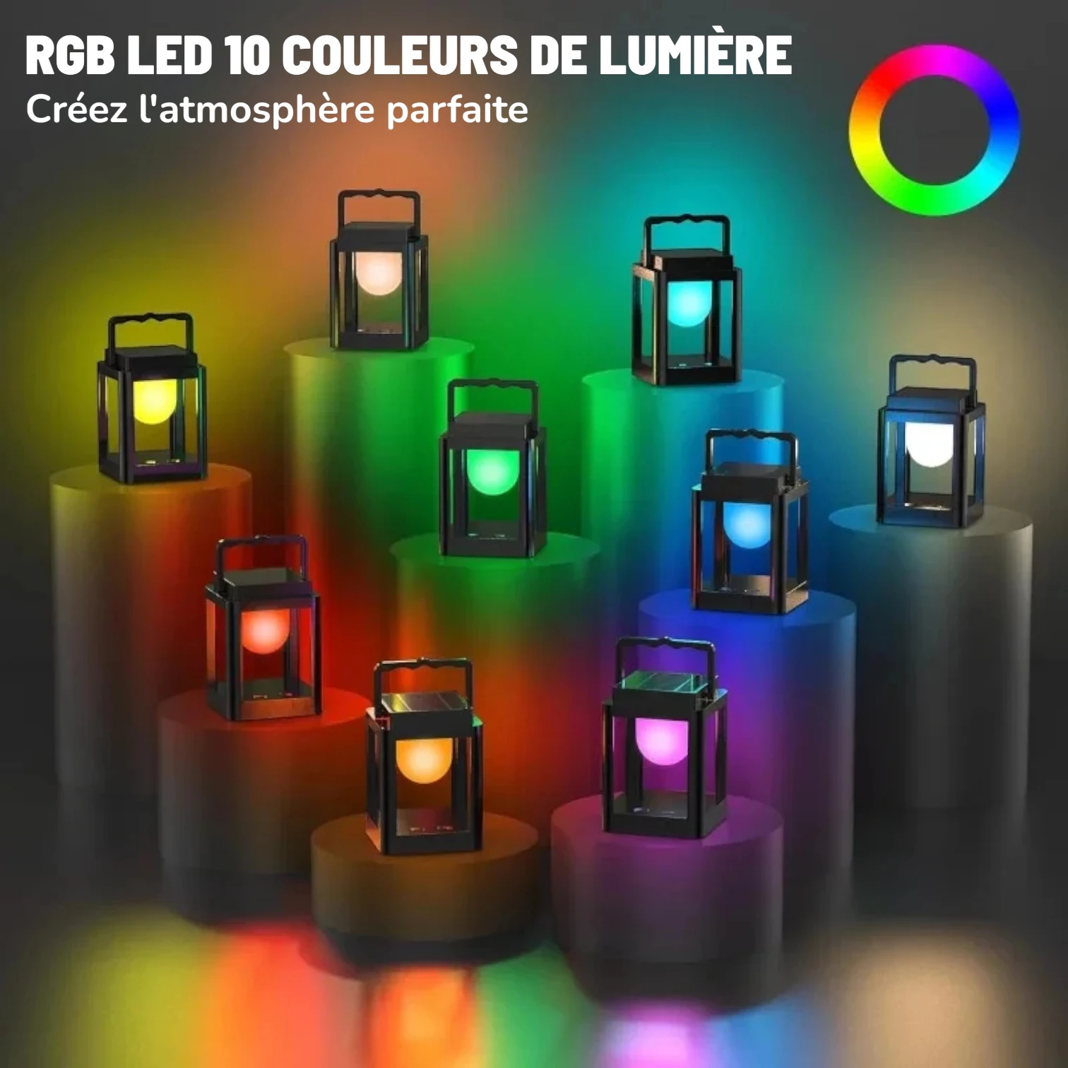 Créez une ambiance parfaite grâce à la Lampe LED solaire portable étanche avec contrôle tactile et 10 modes couleur RGB – 72h d’autonomie !