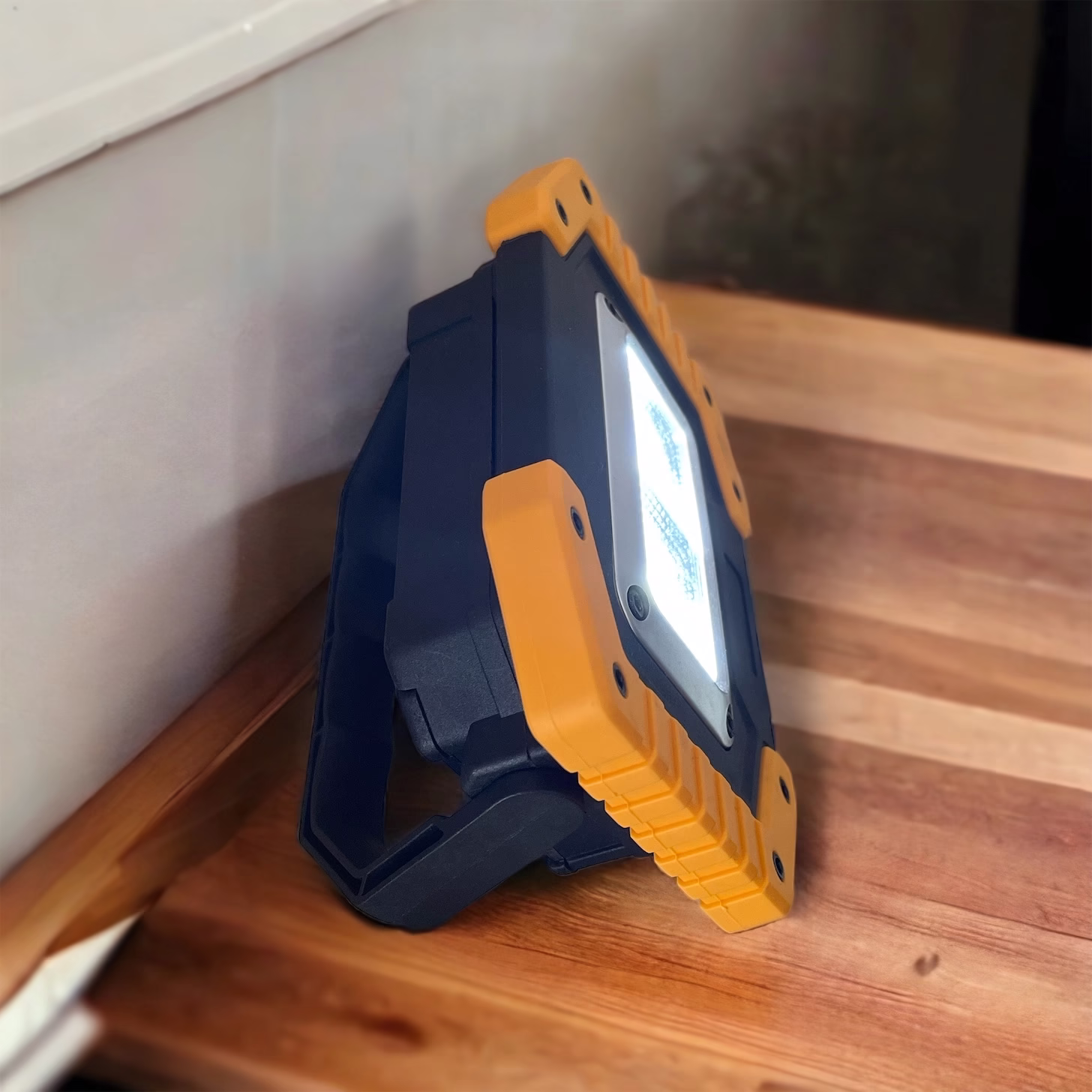 Voici pour vous ce Mini projecteur chantier rechargeable Floodlight pour tous ceux et celles qui veulent profiter de leurs dernières heures de journée pour continuer leurs travaux une fois la nuit tombée.