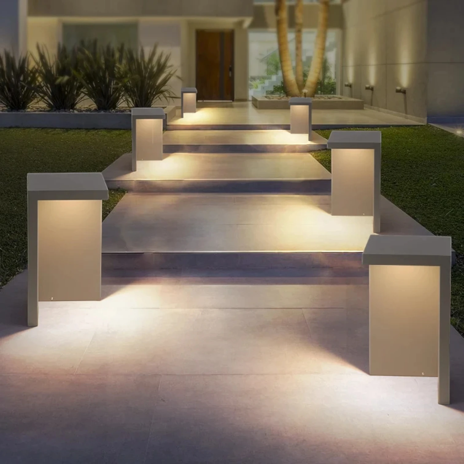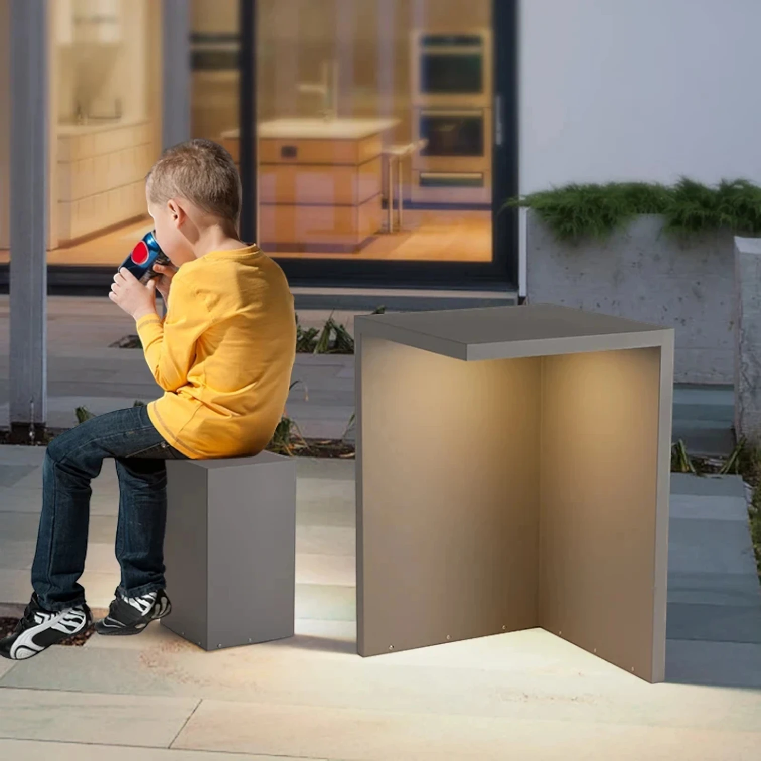 Ces luminaires multifonctionnels s’adaptent parfaitement aux terrasses contemporaines, jardins de villas, balcons spacieux et cours résidentielles. Leur modularité permet de créer différentes configurations : table haute avec tabouret pour coin repas, ensemble de cubes pour salon d’extérieur, bornes d’éclairage le long d’allées. Les dimensions variées (de 250x250x250mm à 450x450x700mm) offrent une flexibilité d’agencement selon les besoins spécifiques. L’éclairage descendant structure visuellement l’espace nocturne tandis que la fonction mobilier optimise la praticité diurne.