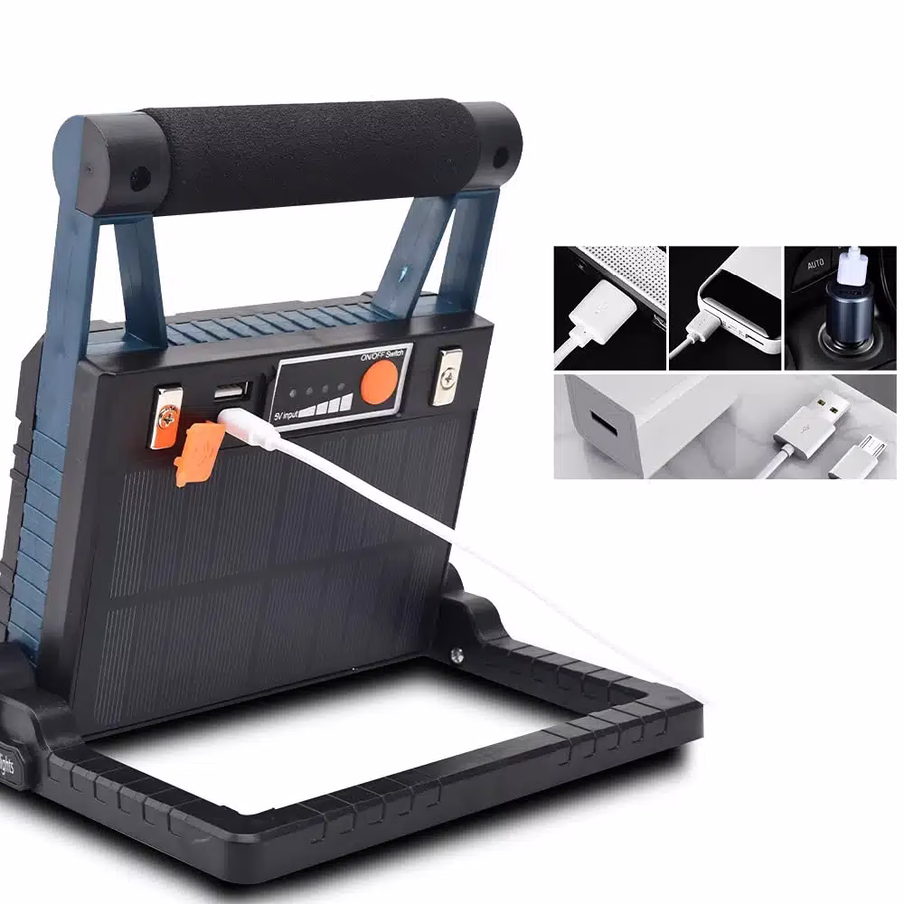 Notre Projecteur LED professionnel rechargeable solaire conviendra pour tout type de tâches. Il viendra surtout en aide à ceux qui doivent continuer de travailler lorsque que le jour s’assombrit. Cette lampe rechargeable est idéale donc, si vous travaillez dans un atelier, un garage, ou sur un chantier de construction. Ses applications sont multiples et elle pourra faire preuve d’une très grande utilité même pour des tâches domestiques.