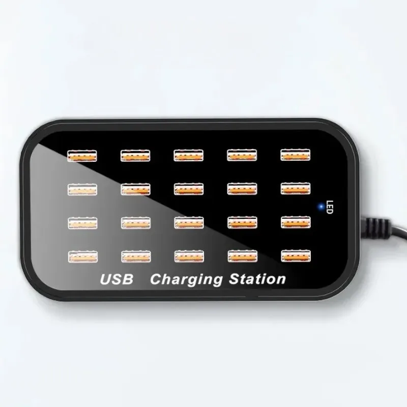 La Station de charge USB multi-ports 100W révolutionne radicalement l’approche de la recharge collective en s’adaptant précisément à vos besoins. Disponible en versions 10, 15, 16 ou 20 ports, elle évolue avec la croissance de votre équipement électronique. Fini les installations électriques complexes et les prises multiples encombrantes qui saturent vos espaces. Vos lampes rechargeables Ma Lampe Rechargeable, smartphones d’équipe, tablettes de présentation et accessoires connectés bénéficient désormais d’une centrale énergétique ultra-compacte (148x78x58mm). Les indicateurs LED colorés offrent un contrôle visuel instantané de chaque port : rouge en charge, blanc en veille. Votre productivité collective s’optimise grâce à des équipements constamment opérationnels sans surveillance particulière.