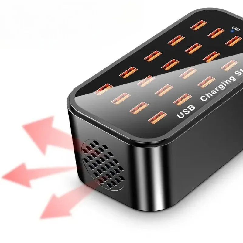 La performance exceptionnelle de la Station USB multi-ports réside dans sa capacité à délivrer 100W de puissance totale avec une efficacité de 70% maintenue en continu, quelle que soit la configuration choisie. Le système de reconnaissance automatique identifie instantanément chaque appareil connecté et ajuste la distribution électrique optimale jusqu’à 20A total. La ventilation intégrée silencieuse évacue efficacement la chaleur générée, garantissant un fonctionnement stable même lors d’utilisations intensives 24h/24. Les composants électroniques haute qualité avec noyau magnétique renforcé assurent une durabilité industrielle. Que vous optiez pour le modèle 10 ports pour un bureau ou la version 20 ports pour un espace de coworking, la Station gère simultanément tous vos appareils avec une fiabilité remarquable.