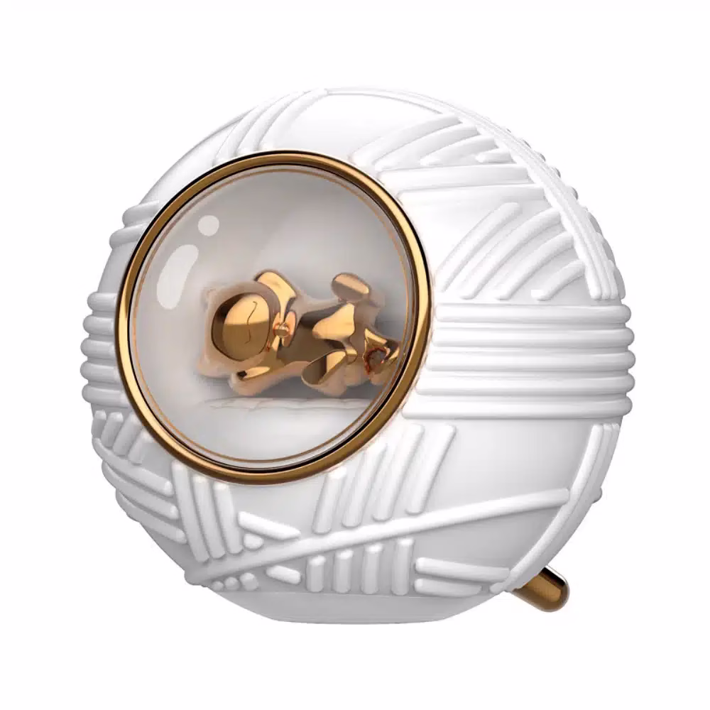 Découvrez notre veilleuse de nuit rechargeable originale Catball moderne et surprenante en forme de pelote de laine lumineuse où dort un petit chat doré